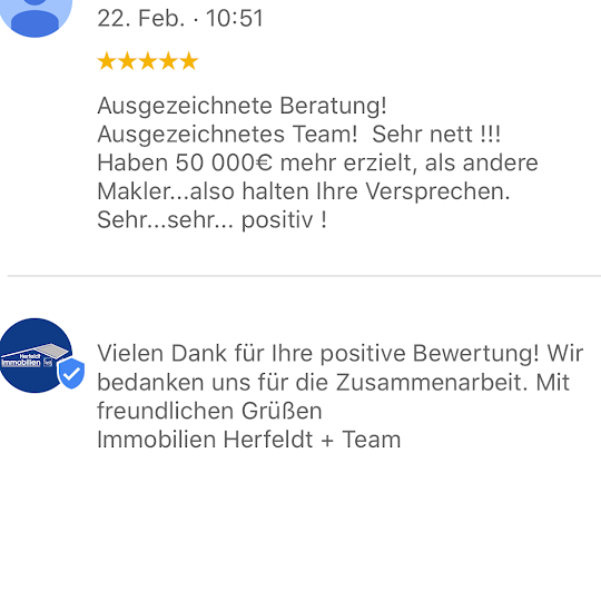 Wir bedanken uns für viele tolle Kundenbewertungen⭐️⭐️⭐️⭐️⭐️ Ihr Immobilienmakler ?? Immobilien Herfeldt + Team