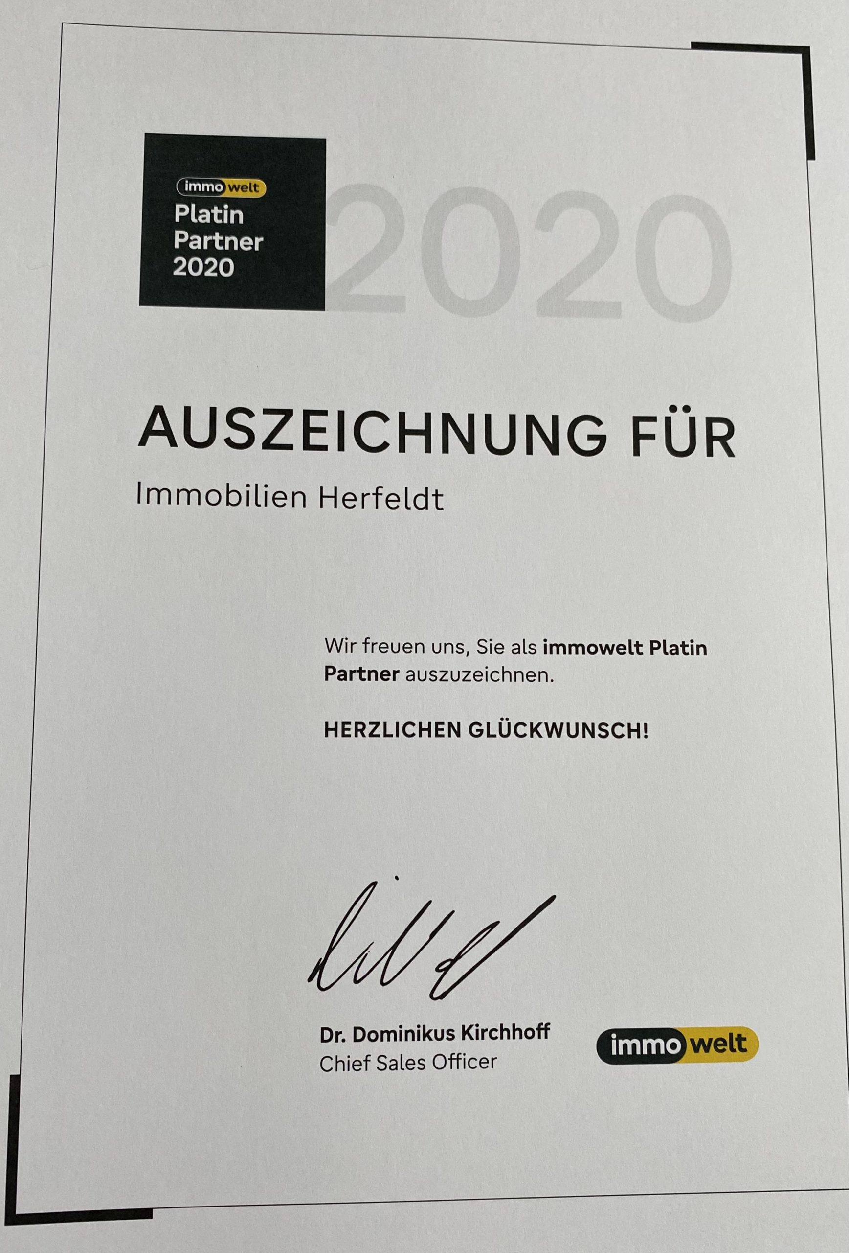 12. April 2021 von Benjamin Herfeldt @immowelt #auszeichnung???‼️ #platinpartner #immobilienangebote #immobilienmakler #immobilienherfeldt??