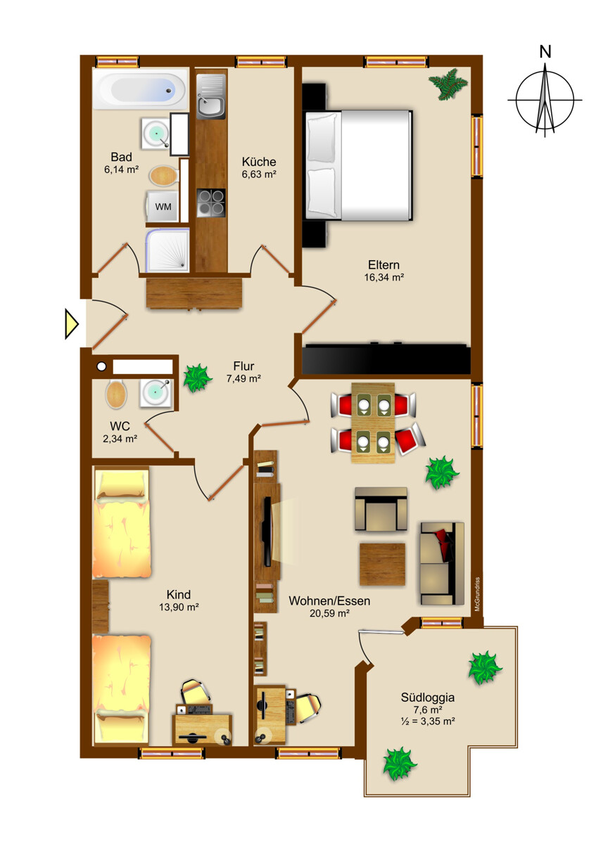 - 3-Zimmer-Eigentumswohnung im 1. Obergeschoss mit Loggia
