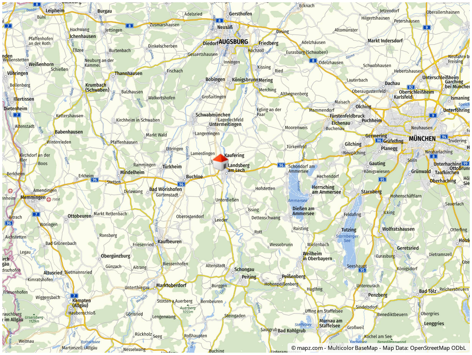 Landsberg ist eine wunderschöne Kleinstadt mit hervorragender Infrastruktur. Alle Annehmlichkeiten wie Theater, Kino, Schwimmbad, Restaurants, Ärzte, Sportvereine und ein Klinikum sind vor Ort. Sowohl Kindergärten, Grundschulen, eine Waldorfschule als auch sämtliche weiterführenden Schulen sind in Landsberg vorhanden. Besonders reizvoll sind die historische Altstadt von Landsberg mit dem Lechwehr, die Fußgängerzone und die vielen gemütlichen Plätze und Restaurants, Cafés und Bars. Der Wildpark "Pössinger Au" lädt zu ausgedehnten Spaziergängen ein und bietet Groß und Klein gleichermaßen Spaß. Landsberg und seine schöne Umgebung bieten Ihnen viele Möglichkeiten zum Wandern, Radfahren und vieles mehr. Der Stadtbus ist zudem in wenigen Gehminuten erreichbar. Zwischen München und den Alpen, Schwaben und Altbayern gelegen, punktet Landsberg nicht nur mit 800 Jahren stolzer Stadtgeschichte und gewachsener Attraktivität, sondern auch mit einem überaus reizvollen Umland. Sei es das nahe Fünfseenland mit Starnberger- und Ammersee oder der Bodensee, das Allgäu oder der Arlberg - Landsberg bietet ein Höchstmaß an Freizeit- und Ausflugsmöglichkeiten. Dabei muss man die Stadt eigentlich gar nicht verlassen, um Schönes zu sehen oder zu erleben: Zahlreiche Baudenkmäler prägen das Stadtbild, darunter prächtige Bürgerhäuser, beeindruckende Sakralbauten und gemütliche Plätze. Altes wird mit Liebe und Sachverstand gepflegt, moderne Gebäude fügen sich harmonisch in das Gesamtbild ein und tragen zur architektonischen Vielfalt Landsbergs bei. Sie erreichen zudem in ca. 10-15 Minuten die romantische Altstadt. Durch die nahegelegene A 96 ist die Anbindung an die ca. 40 Autominuten entfernte Landeshauptstadt München optimal. Augsburg erreichen Sie in ca. 25 Autominuten.