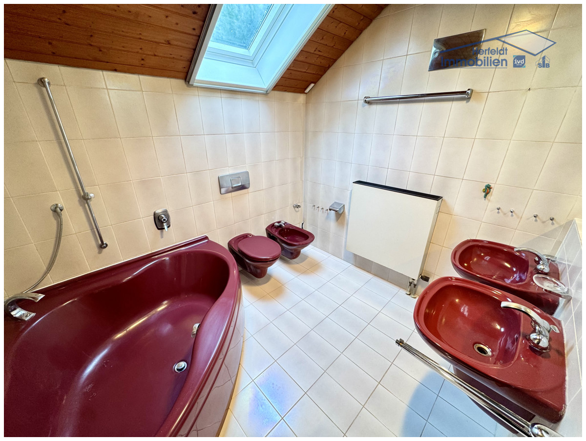 Im Dachgeschoss erwarten Sie ein Elternschlafzimmer mit eigenem Balkon und Ankleideraum sowie zwei Kinderzimmer, von denen eines mit einem Schwedenofen ausgestattet ist. Dieser sorgt für wohlige Wärme und eine besonders gemütliche Atmosphäre. Ein helles Badezimmer mit Wanne, Fenster und Doppelwaschtisch unterstreicht den familienfreundlichen Komfort dieser Immobilie.