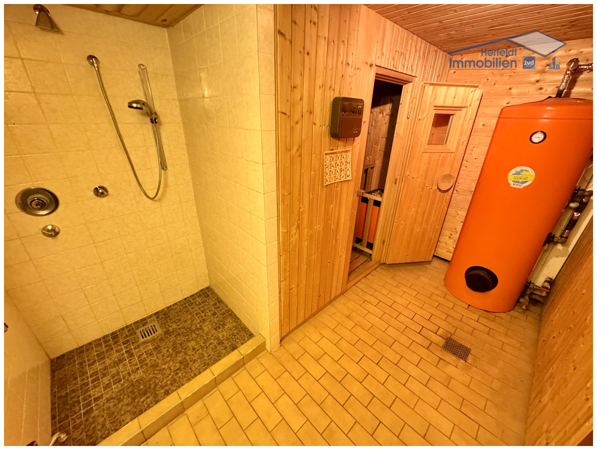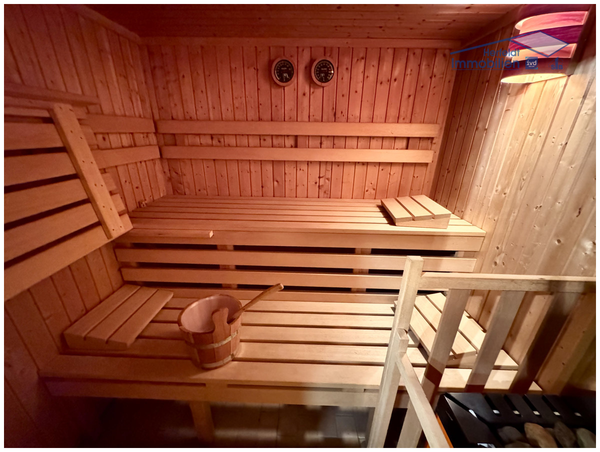 Praktischen Stauraum bietet der isolierte Dachspitz, der über eine Ausziehtreppe erreichbar ist. Das Kellergeschoss mit Heizungs- und Waschraum sowie einem eigenen Bereich mit Dusche und Sauna rundet das Raumangebot ab.
