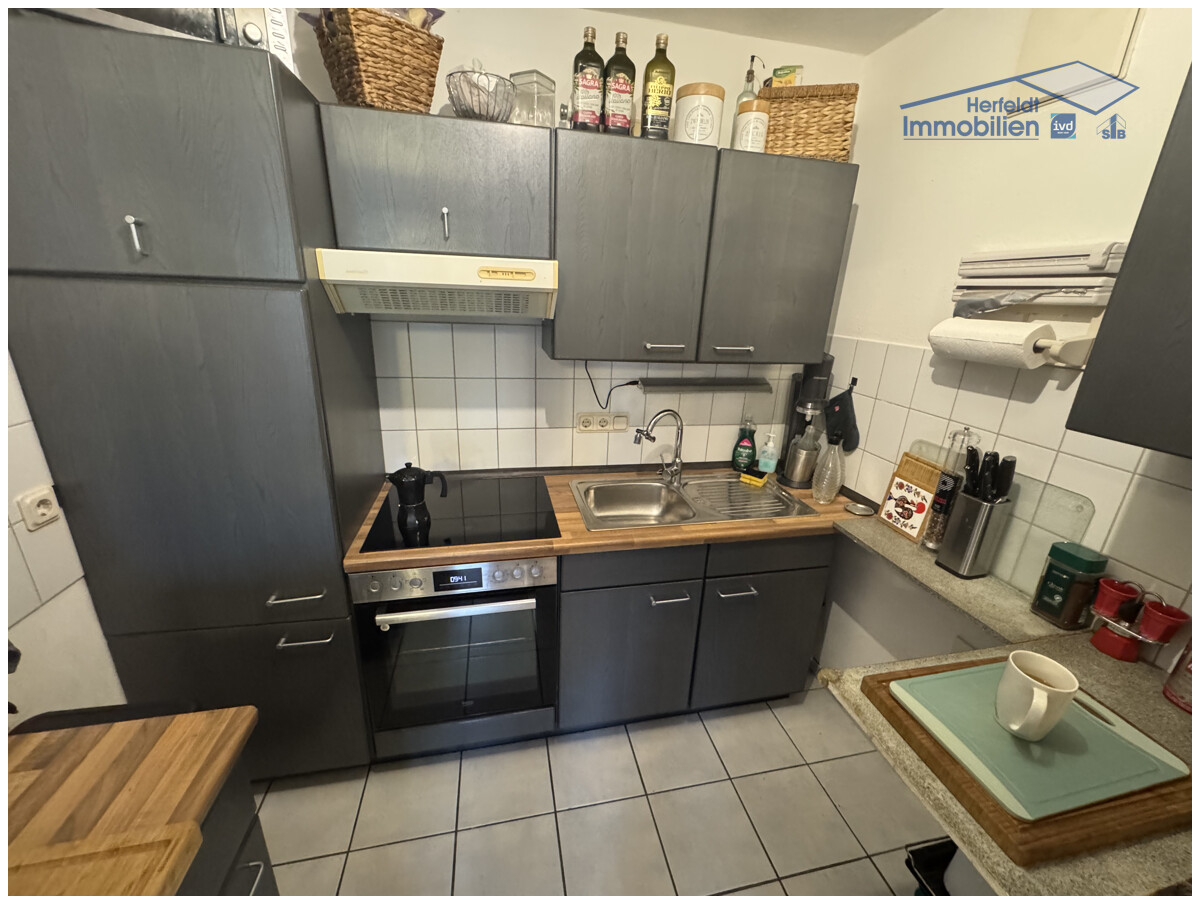 Der mit einer Verglasung abgeteilte Küchenbereich lässt keine Wünsche offen. Die gepflegte Küche gehört zur Wohnung und kann abgelöst werden und bietet zudem genügend Platz, um kulinarische Ideen umzusetzen. Das Schlafzimmer ist großzügig gestaltet und bietet ausreichend Platz für ein großes Doppelbett sowie einen geräumigen Kleiderschrank.