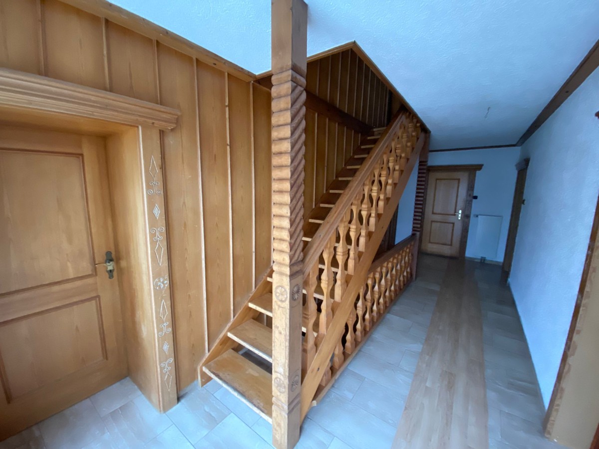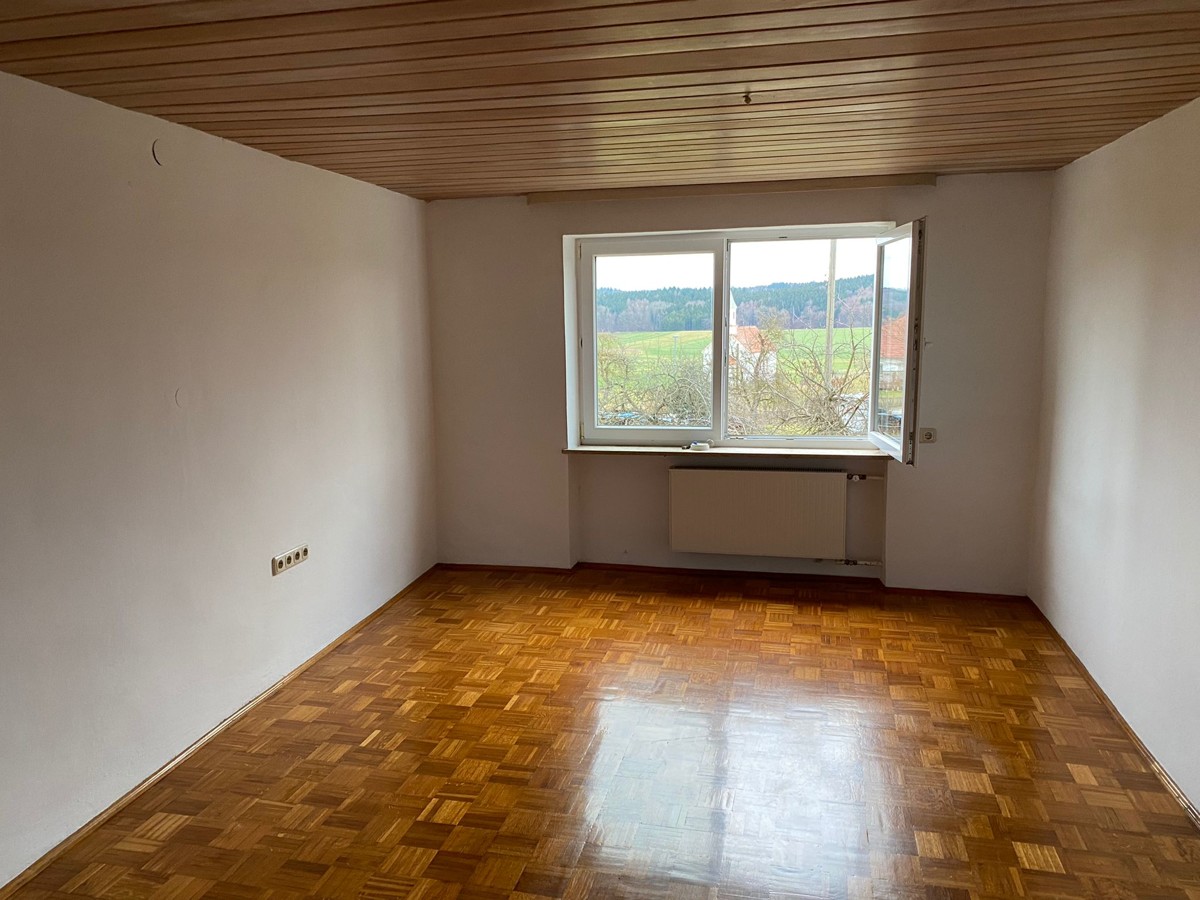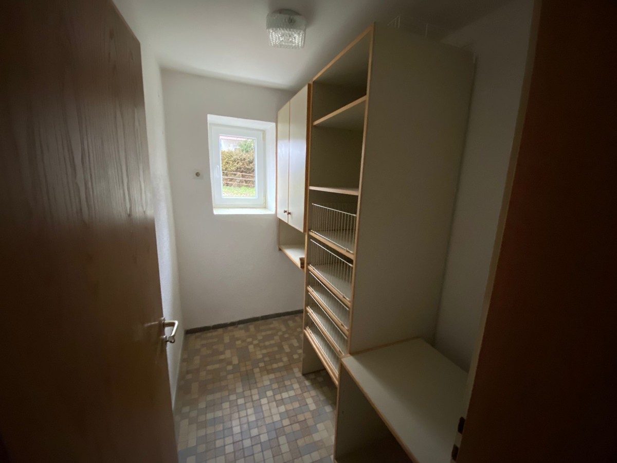Eine praktische Speisekammer ist von der Küche aus zugänglich und bereits mit Regalen ausgestattet. Das Haus wurde erst vor kurzem liebevoll renoviert und befindet sich in einem gepflegten und guten Zustand. Im Obergeschoss bieten drei Schlafzimmer (eines davon mit zusätzlichem Ankleidebereich/Büro) und die große Diele viel Platz für gemütliche Stunden. Das Wohnhaus wird vermietet, die restlichen landwirtschaftlichen Flächen (Stadl nebenan) werden nicht mitvermietet. Beheizt wird das Haus über eine Öl-Zentral-Heizungsanlage. Es besteht zudem die Möglichkeit einen Schwedenofen/Kamin im Wohnzimmer und in der Küche anzuschließen. Ein zusätzlicher Abstellraum im Obergeschoss kann genutzt werden. Die Hauseingangstüre wird in naher Zukunft noch gegen eine neue Türe ausgetauscht.