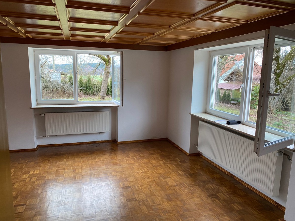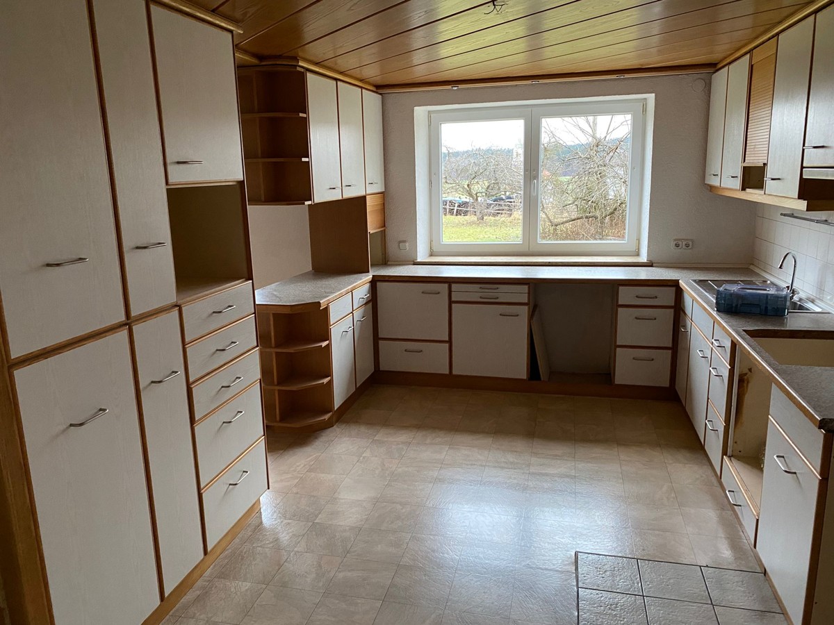 Sie betreten das renovierte Bauernhaus mit ca. 150,5 m² Wohnfläche über eine großzügige Diele, welche genügend Platz für Ihre Garderobe bietet. Ein geräumiges Wohnzimmer und ein großer Küchenbereich mit separatem Esszimmer laden die ganze Familie zum Beisammensein ein. Die gepflegte Einbauküche ist im Mietpreis inbegriffen. Durch die schönen Details wie die hochwertigen Holzdecken und die Echtholzparkettbodenbeläge entsteht ein sehr gemütliches Ambiente. Das moderne Badezimmer mit Badewanne, separater Dusche und zwei Waschbecken verfügt über ein großes Fenster. Somit haben Sie eine gute Belichtung und Belüftung.
