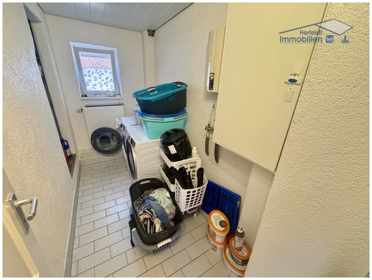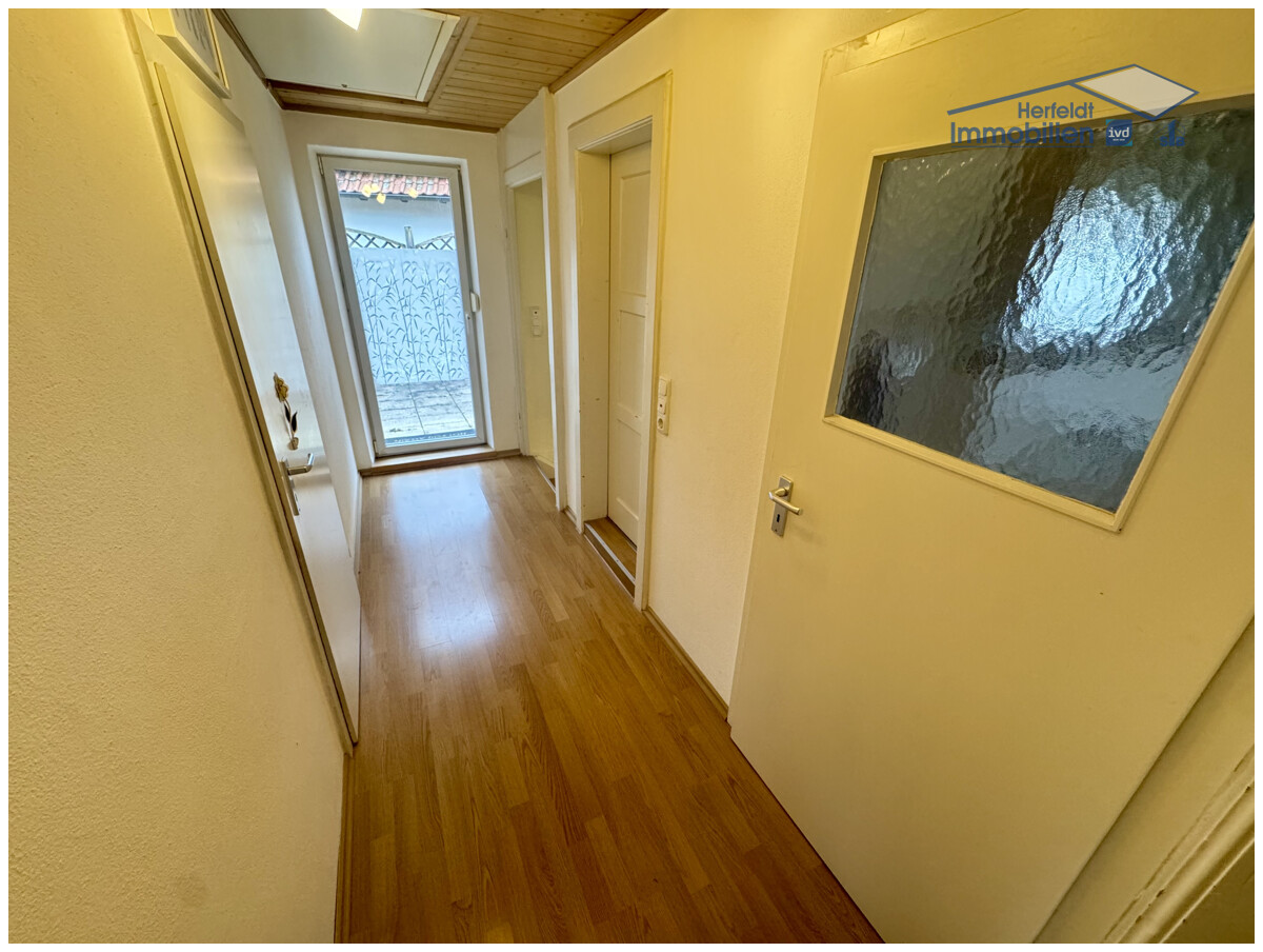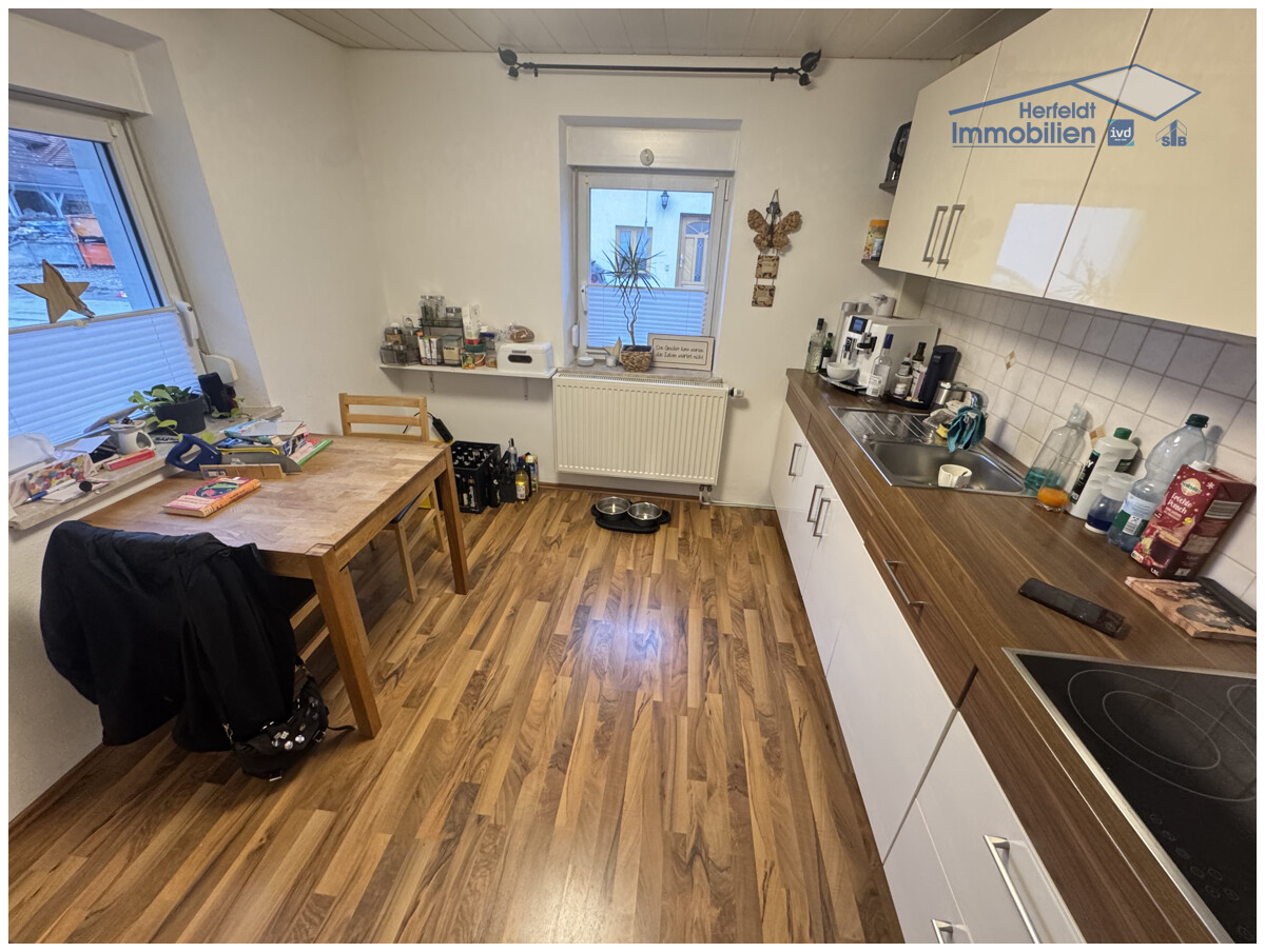 Der Zugang erfolgt über einen geschützten Windfang, von dem Sie über die Diele in die großzügige Wohnküche gelangen. Sie verfügt über Platz für einen Esstisch und eine gepflegte und hochwertige Einbauküche aus 2015, die auf Wunsch abgelöst werden kann. Der liebevoll gestaltete Dielenbereich führt weiter zum modernen Duschbad/Gäste-WC im Erdgeschoss sowie zum Esszimmer und dem angrenzenden Wohnzimmer, zwei warme und gemütliche Wohnbereiche, die durch einen Rundbogen harmonisch miteinander verbunden sind. Eine elegante Echtholztreppe öffnet den Weg ins Obergeschoss, wo ein großzügiges Schlafzimmer, ein helles Kinderzimmer und ein hochwertig saniertes, großes Badezimmer im mediterranen Stil mit Mosaikdetails, Dusche und Badewanne ein komfortables Wohnerlebnis bieten. Ein praktischer Abstellraum inklusive Waschküche ergänzen diese Etage ideal.