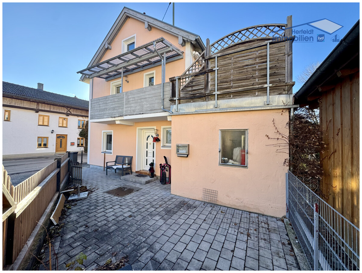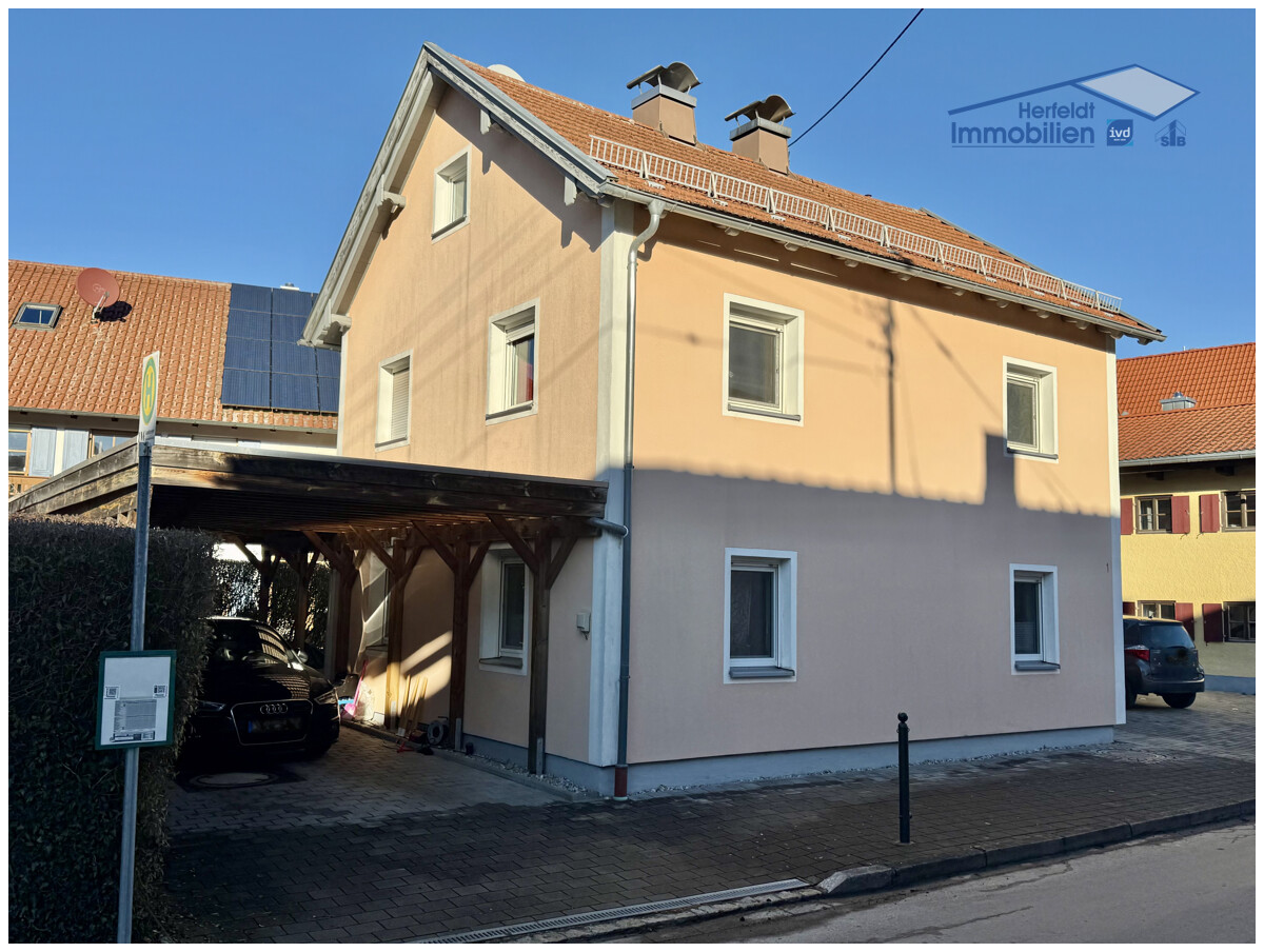 Dieses charmante und gepflegte Einfamilienhaus mit sonniger Dachterrasse und praktischem Doppelcarport befindet sich in zentraler und dennoch ruhiger Lage des beliebten Landsberger Stadtteils Erpfting – ein Wohnort, der familiäre Atmosphäre mit hervorragender Anbindung verbindet. Das Haus wurde ursprünglich um 1913 in solider Massivbauweise errichtet, 1955 aufgestockt und seither kontinuierlich modernisiert. Auf einem kompakten Grundstück von ca. 167 m², inklusive ca. 22 m² Eingangsbereich und Terrasse, erwarten Sie ca. 92 m² Wohnfläche sowie ca. 147 m² vielseitig nutzbare Neben- und Abstellflächen (Nutzfläche). Vier gemütliche Zimmer, eine Wohnküche und zwei gepflegte Bäder bieten ein angenehmes Wohnambiente. Ein großer Dachspeicher mit ca. 45 m² (zwei Räume) eröffnet zusätzlich attraktive Ausbauperspektiven oder Lagermöglichkeiten – ideal für wachsende Wohnbedürfnisse oder als Mehrwert für Kapitalanleger.