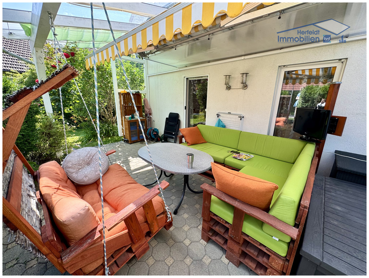 Das ca. 599 m² große Grundstück bietet viel Platz für Gartenliebhaber. Die überdachte Terrasse ermöglicht wetterunabhängigen Genuss des Außenbereichs, während der liebevoll angelegte Garten viel Platz für individuelle Gestaltung bietet. Eine zweite Sonnenterrasse sowie zwei Gartenhäuser sind für zusätzlichen Stauraum vorhanden.