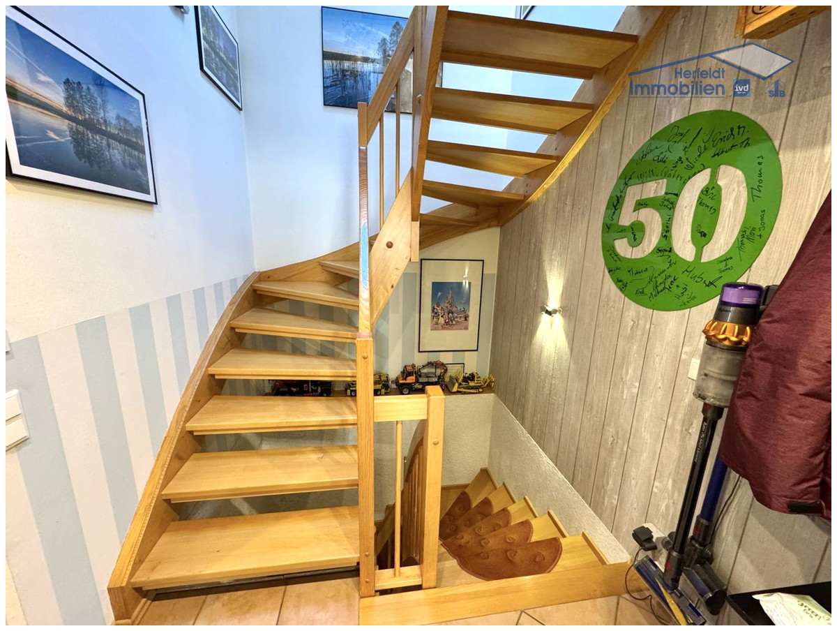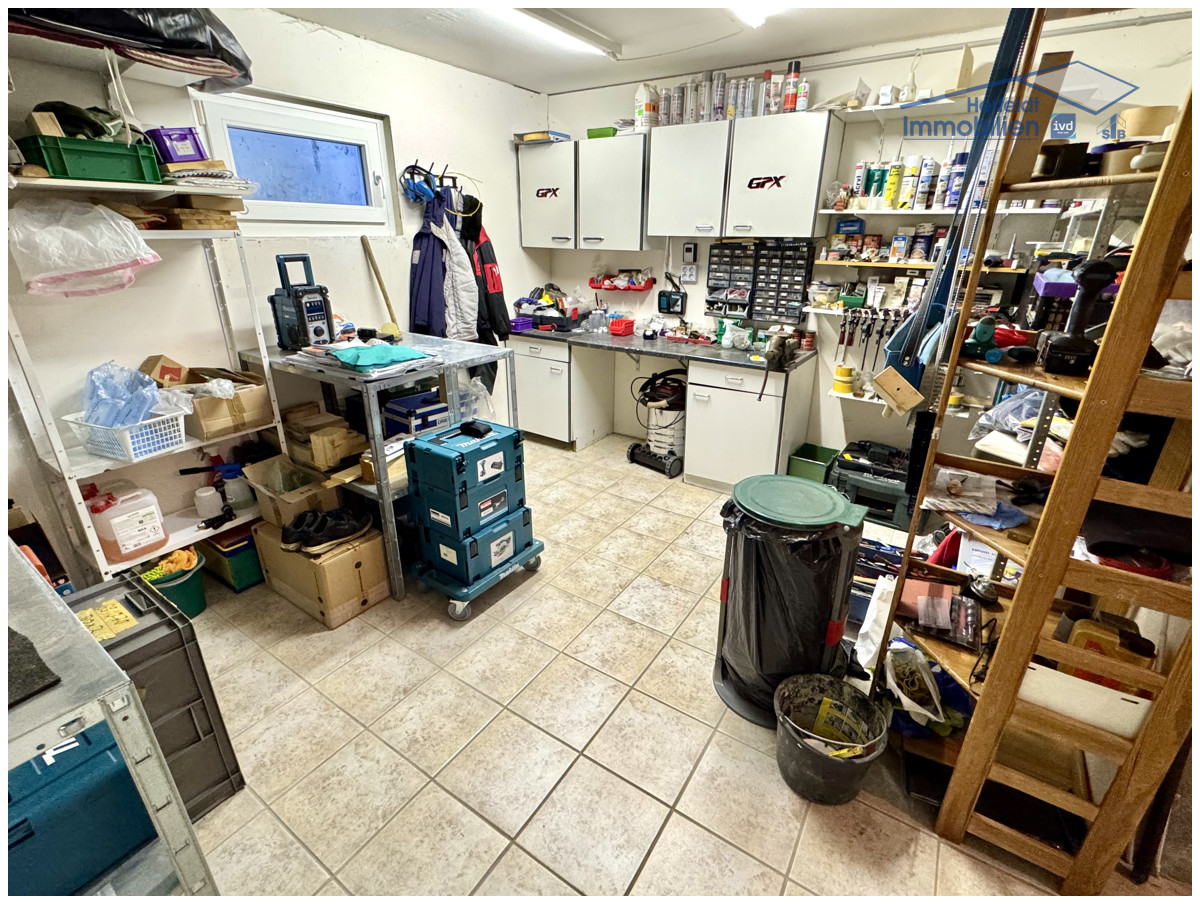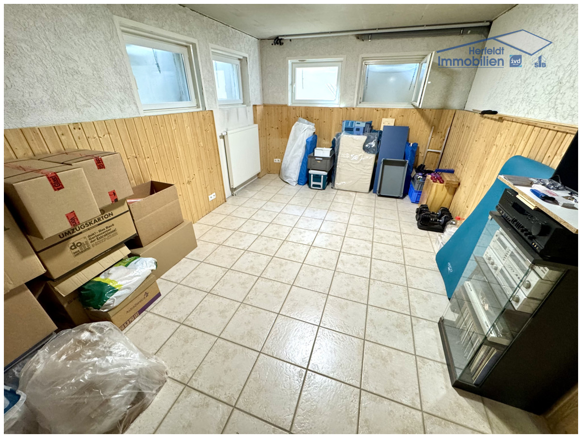 Das Haus ist vollständig unterkellert und bietet reichlich Stauraum. Die gefliesten Kellerräume werden aktuell als Waschküche, Werkstatt und Fitnessraum genutzt, lassen sich jedoch nach Belieben umgestalten und individuell anpassen.