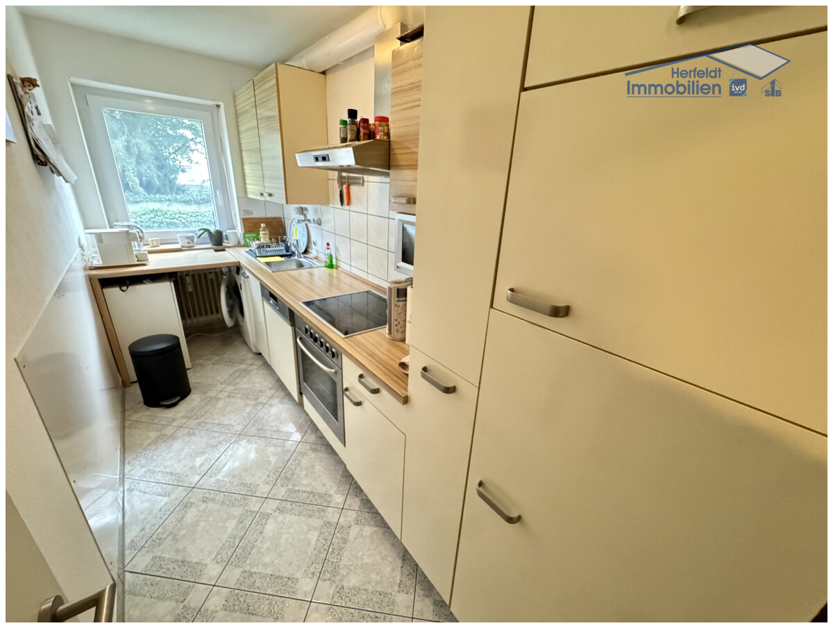 Hochwertiges Laminat in den Wohnräumen sorgt für ein stilvolles, einheitliches Erscheinungsbild und verleiht jedem Raum eine angenehme, behagliche Atmosphäre. Flur, Küche und Bad sind mit Fliesen ausgestattet, was den gepflegten und zeitlos-eleganten Gesamteindruck unterstreicht. Die 2015 installierte Einbauküche fügt sich harmonisch in das Raumkonzept ein und überzeugt sowohl durch modernes Design als auch durch ihre praktische Funktionalität.