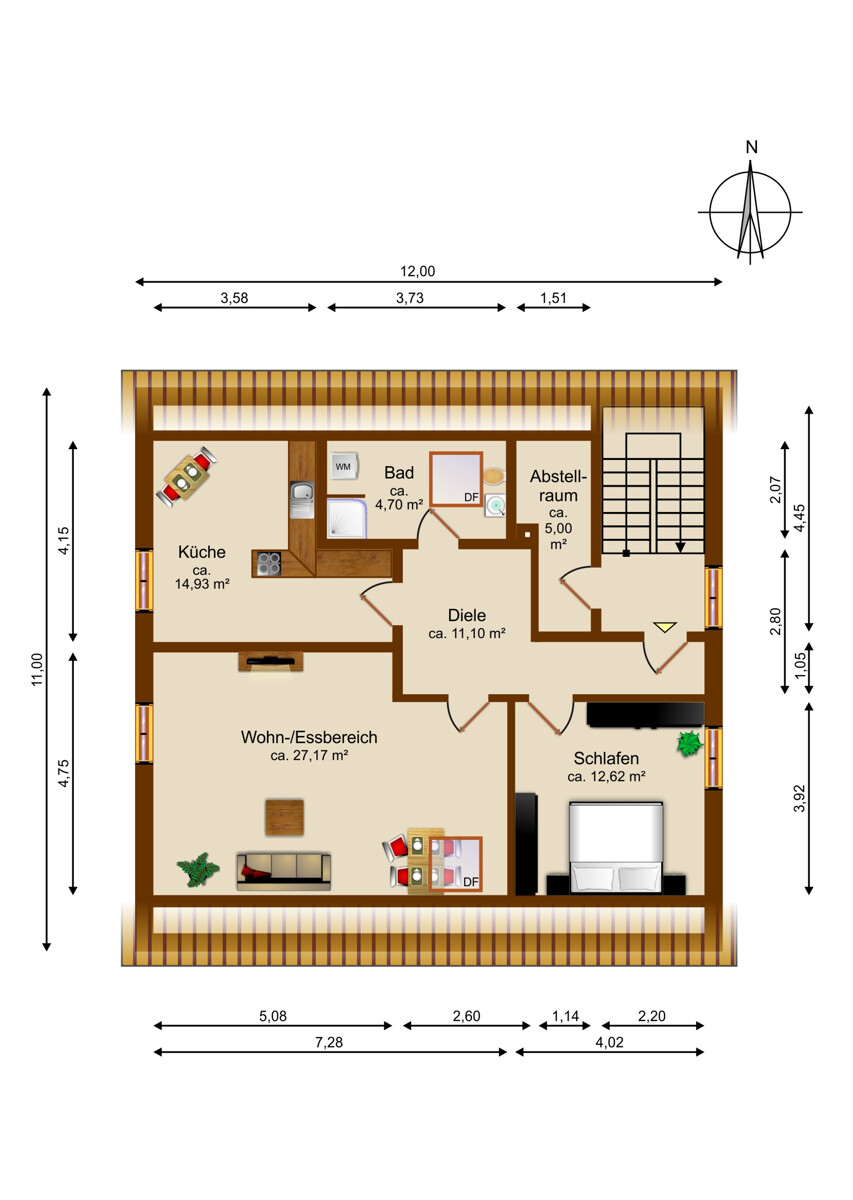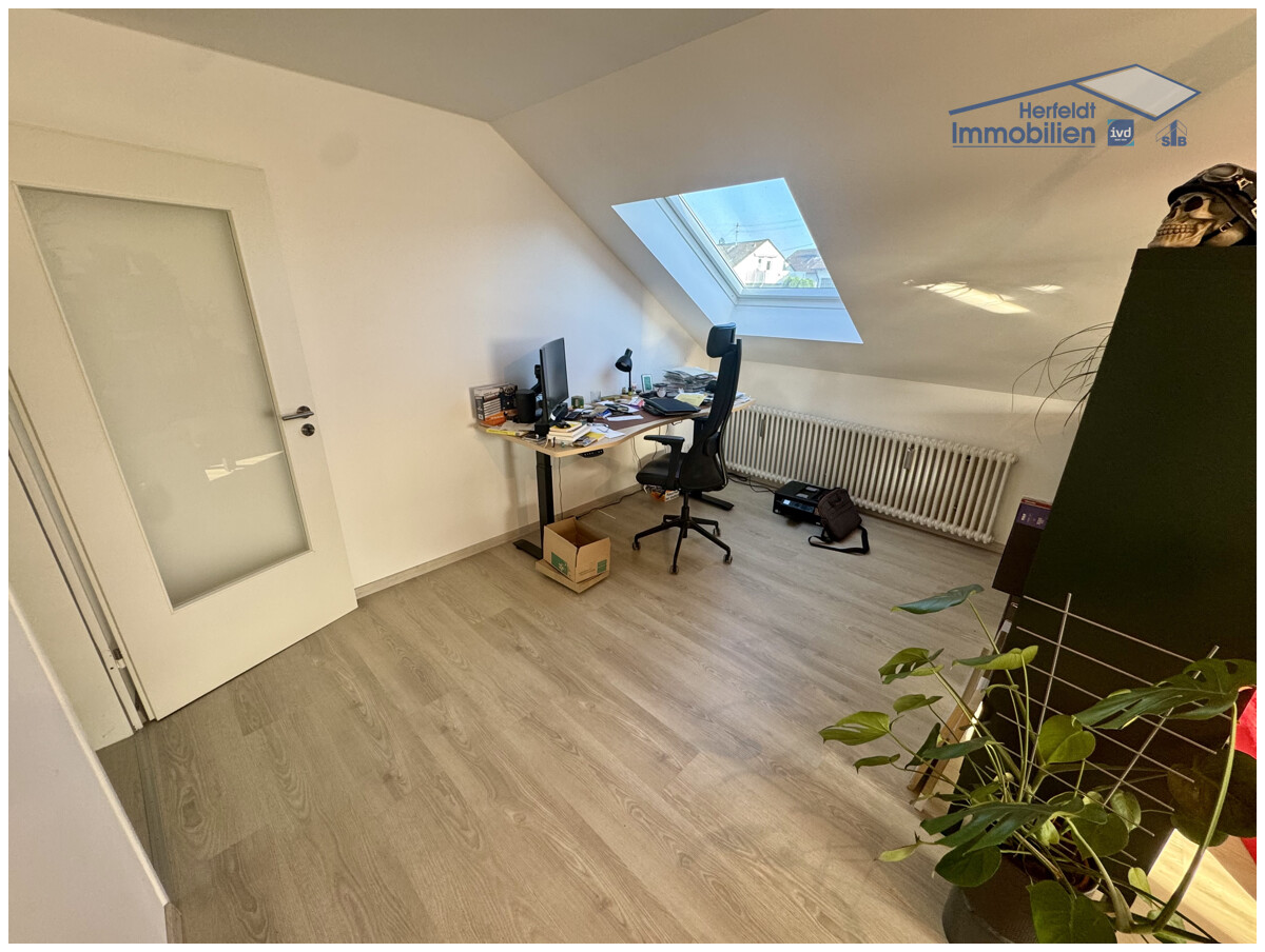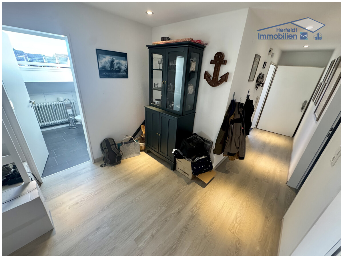 Den Anfang machten 2013/2014 neue Dachfenster, ausgeführt als zweifachverglaste Kunststoffelemente, die für helle, lichtdurchflutete Räume sorgen. 2018 folgte eine umfassende Modernisierung mit einem Investitionsvolumen von rund 25.000 €. In diesem Zuge wurde die Zwischendecke isoliert, zwei weitere Dachflächenfenster erneuert, sämtliche Bodenbeläge durch edles Vinyl ersetzt und das Badezimmer vollständig kernsaniert. Besonders letzteres überzeugt durch zeitlose Eleganz, moderne Fliesen und eine Ausstattung, die in Funktionalität wie Ästhetik gleichermaßen begeistert.