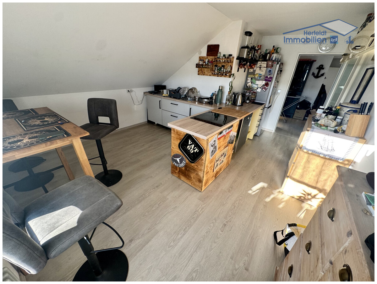 Schon beim Eintreten empfängt Sie eine freundliche Diele, von der aus sich die Räume auf elegante Weise erschließen. Das Schlafzimmer präsentiert sich hell und klar gestaltet, während das großzügige Wohnzimmer mit seinen großen Fenstern ein lichtdurchflutetes Ambiente und vielfältige Einrichtungsmöglichkeiten bietet. Das stilvolle Badezimmer überzeugt mit moderner Ausstattung, Tageslicht und einem praktischen Waschmaschinenanschluss. Direkt angrenzend entfaltet sich die schöne, großzügige Küche, die mit ihrem offenen Charakter zum Kochen, Verweilen und geselligen Beisammensein einlädt.